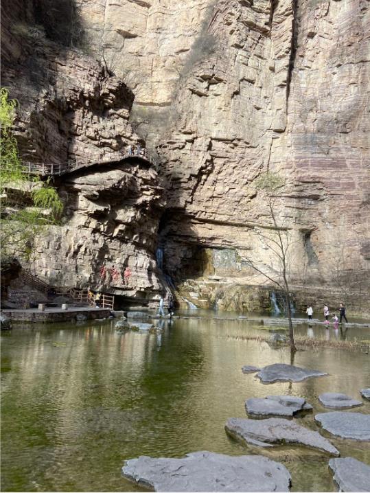 27日早上在公司集合后,大家乘坐大巴車(chē)經(jīng)過(guò)三個(gè)小時(shí)的行程,到達(dá)了太行大峽谷景區(qū)。入住酒店及午餐后,首先游覽了有太行魂之稱(chēng)的王相巖景區(qū)。王相巖景區(qū)唐以來(lái),享有盛名,景區(qū)東臨溪水,西依懸崖,左右兩側(cè)峭壁環(huán)繞,形成了一個(gè)閉合性極強(qiáng)的圍谷,暗合中國(guó)古代風(fēng)水學(xué)“左青龍、右白虎、前朱雀、后玄武”的理想模式,吸引了歷代名人雅士來(lái)此修身隱居。在攀爬過(guò)程中,陡峭、曲徑隨處可見(jiàn)。大家一方面驚嘆大自然的巧奪天工,一方面感受大自然的美。